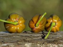Редкий сорт красивого дикого перца. Куст компактный с крепким центральным стеблем, среднеоблиственный, высотой до 70 см. Плоды каплевидные, желто-оранжевые, собраны в крупные кластеры. Сочные, с сильным фруктовым ароматом. Острота примерно 100 000 shu. Пригоден для выращивания в домашних условиях в горшке от 3-х литров.