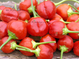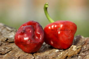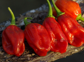 Один из самых сладких и ароматных слабоострых перцев. Потрясающий кросс Westindian Yellow Habanero с неизвестным сортом. Плоды крупные, с толстой очень сочной стенкой, красивого малиново-красного цвета. Острота присутствует, значительно выше заявленной(0-500 сковиллов), мягкая, примерно 3-5 тыс. SHU. Куст крепкий, с незначительным опушением, высотой 70 см, с боковым ветвлением. Рекомендуем для свежего потребления, фарширования сыром и приготовления слабоострых соусов.