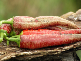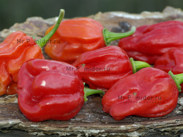 Один из самых сладких и ароматных слабоострых перцев. Потрясающий кросс Westindian Yellow Habanero с неизвестным сортом. Плоды крупные, с толстой очень сочной стенкой, красивого малиново-красного цвета. Острота присутствует, значительно выше заявленной(0-500 сковиллов), мягкая, примерно 3-5 тыс. SHU. Куст крепкий, с незначительным опушением, высотой 70 см, с боковым ветвлением. Урожайный.
