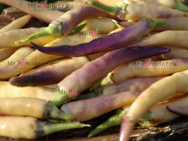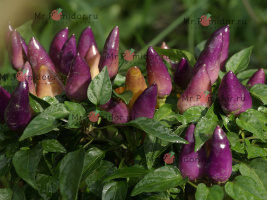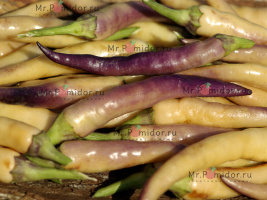 Редкий декоративный карликовый сорт . Высота до 25 см. Плоды довольно толстостенные для декоративного перца. Стручки красиво перецветают от фиолетового до сливочно-розового. Вкус перечный, без горечи, острота мягкая, ароматный.