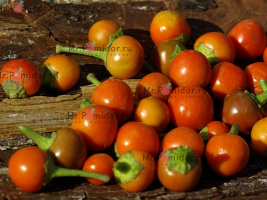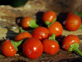 Сорт острого перца с условным названием. Куст невысокий до 30 см, листья крупные, плотные. Неприхотливый, урожайный и очень декоративный, при этом съедобный и с достаточной остротой, примерно 10000-15000 сковиллов. Подходит для выращивания в домашних условиях.