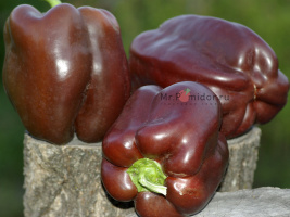 Коллекционный сорт сладкого перца. Среднеспелый, до 120 дней, урожайный сорт для выращивания в плёночных теплицах и  открытом грунте. Куст раскидистый, крепкий, хорошооблиствленный, высотой 60-70 см. Плоды кубовидные, глянцевые, 3-4х гнёздный, слегка ребристые, крупные, до 300 г. Толщина стенки до 8-9 мм, сладкие. Окраска в технической зрелости зелёная, в биологической –шоколадная с малиновым оттенком.