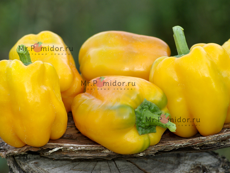 Среднеспелый, урожайный, крупноплодный сорт сладкого перца. Формирует куст высотой 80-110 см. Плоды крупные, массой 250 г (отдельные до 300-400 г), кубовидные, с толстыми мясистыми стенками до 10 мм. Незрелые плоды зеленого цвета, зрелые — ярко-оранжевого. Мякоть сладкая и ароматная.