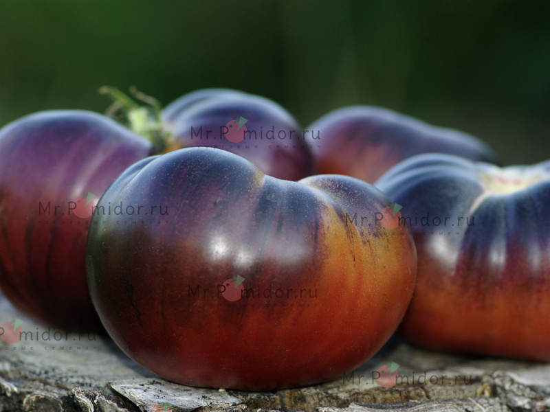 Индет, среднерослый, среднего срока созревания. Плоды плоскоокруглые, с небольшой ребристостью, бордово-коричневые с плотным антоцианом, покрывающим почти всю поверхность плода. Мякоть вишневого цвета, мясистая, с пряным ароматоми и фруктовым привкусом. Вкус отличный, сбалансированный. Обилие плодов весом 250-400 г.