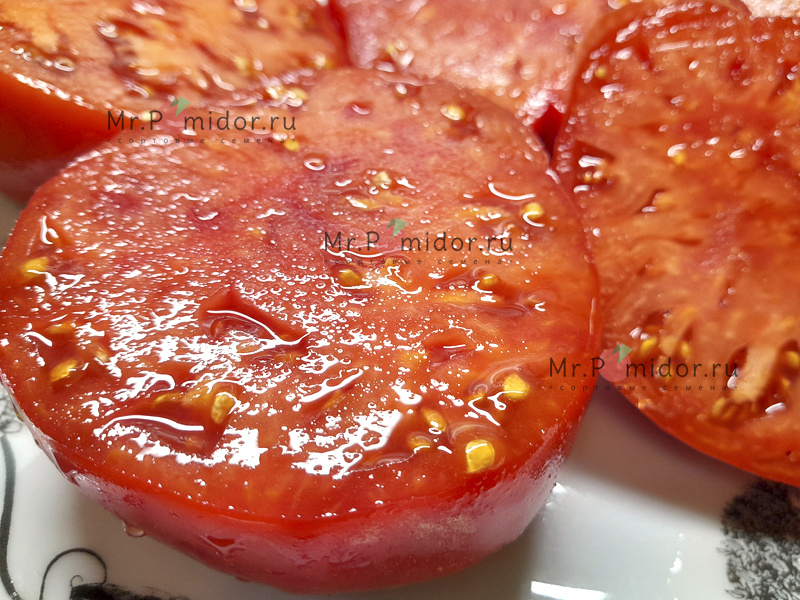 Индет, высокорослый, среднего срока созревания. Крепкое растение с картофельным листом. Плоды плоскоокруглые, розового цвета, массой 300-500 г. Очень урожайный. Мякоть бифштексного типа, с замечательным вкусом и ярким ароматом.
