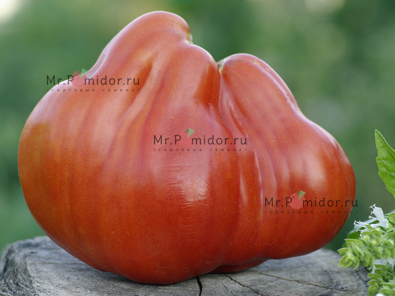 Высокорослый, среднеспелый сорт. Куст крепкий. Плоды крупные, интересной грушевидной формы, красного цвета. Мякоть плотная, вкусная, сладкая, с большим содержанием сухих веществ. Семян в плодах мало.