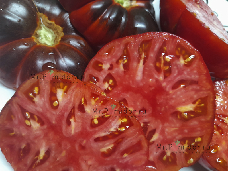 Новинка селекции. Очень красивый и урожайный сорт томата. Индет, высокорослый, среднеранний. Куст среднеоблиственный, компактный, лист регулярный. Плоды плоскоокруглые, с пышными плечиками и ребристостью, оранжево-малиновые с плотным антоциановым покрытием, массой 250-400 г. Мякоть сочная, с ярким пряным вкусом, сладкая.