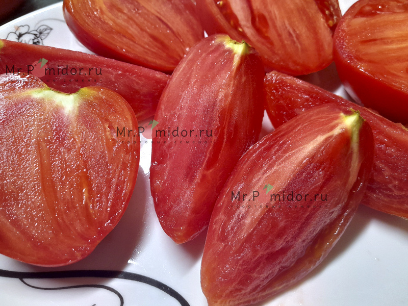 Индет, среднеспелый, высокорослый. Плоды малиновые, сердцевидные, крупные, массой до 500-700 г. Мясистые, сладкие, превосходного вкуса.