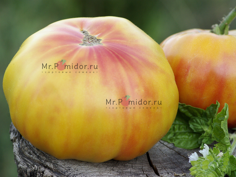 Семейная реликвия из штата Кентукки, США. Индет. Высокорослый, среднего срока созревания, крупноплодный. Сорт устойчив к большинству заболеваний томатов. Плоды плоскокруглые, медово-жёлтого цвета с розовыми разводами. Масса 300-500 г и более. Томаты великолепного вида, сбалансированного вкуса и консистенции. Один из лучших биколоров.