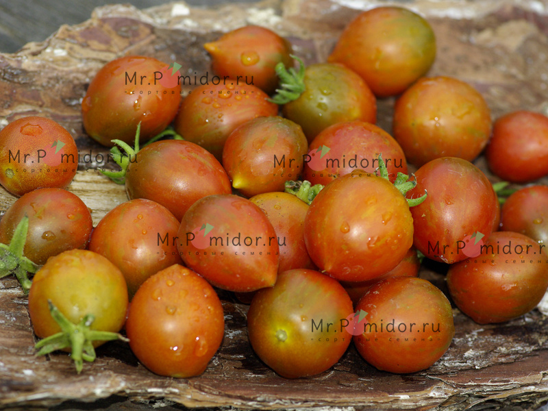 Низкорослый (30-50 см), с большим количеством побегов, шарообразный куст с мелким тёмно-зелёным листом. Плоды сливовидные, миниатюрные, с заостреной верхушкой, красно-коричневые, с  неяркими полосками зелёного цвета. Вкус яркий, сладкий. Очаровательный мини-томат с длительной отдачей урожая.