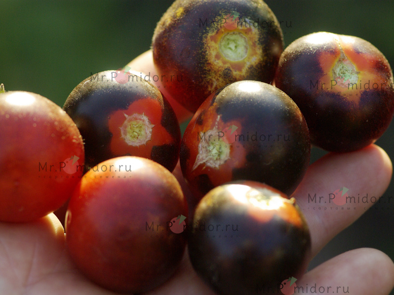 Очаровательный сорт микротомата. Штамб, с простым морщинистым листом высотой 30-40 см. Ранний, неприхотливый, компактный. Пригоден для выращивания в контейнерах и кашпо. Плоды темно-красные, массой 10-15 г, с выраженным анто. Вкус яркий, взрывной, пряный.