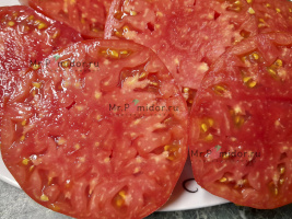 Сильнорослый индет, высотой более 2 м, ранний. Плоды розово-кремовые с антоциановым узором. Очень красивые и вкусные. Мякоть мармеладной консистенции, сладкая, с пряным ароматом с легкими фруктовыми нотками.
