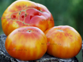 Есть в наличии Новинка селекции. Очень красивый и урожайный сорт томата. Индет, высокорослый, среднеранний. Куст среднеоблиственный, компактный, лист регулярный. Плоды плоскоокруглые, с пышными плечиками и ребристостью, оранжево-малиновые с плотным антоциановым покрытием, массой 250-400 г. Мякоть сочная, с ярким пряным вкусом, сладкая.