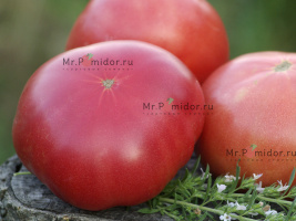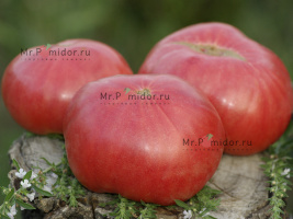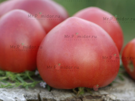 Среднеспелый, среднерослый, среднеранний, урожайный сорт. Куст штамбовый, высотой 0,6- 1 метр, требующий подвязки к опоре и частичного пасынкования. Лист широкий, морщинистый. Плоды в виде пухлого сердечка, розового цвета , массой 100-200 г. Мякоть сочная и мясистая, сладкая.