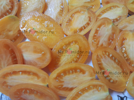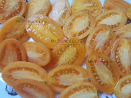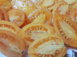 Среднего срока созревания, высотой до 1 м, с простым морщинистым листом. Плоды сливовидные, пастельно-оранжевого цвета, одномерные, массой в среднем 80-100 г. Мякоть маслянистая, сладкая, ароматная.  Урожайность высокая, необходима подвязка. Сорт получен в 2019г.