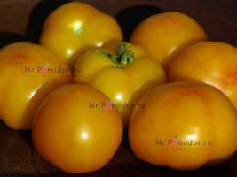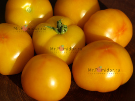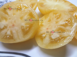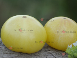 Среднего срока созревания, с вариегатной крупной листвой картофельного типа. Куст крепкий, высотой до 80 см. Плоды молочно-лимонного цвета, плоскоокруглые, массой до 250 граммов. Вкусные, ароматные, сладкие, с сочной мармеладной мякотью.