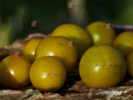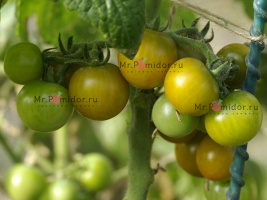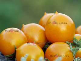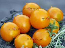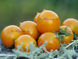 Супердет, высотой 30 см, ранний. Штамб с крепким центральным стеблем, лист простой, крупный, морщинистый. Очень продуктивное растение с длительным плодоношением. Помидоры округлой формы, ярко-жёлтые, гладкие, с хорошим вкусом. Пригодны для консервирования, заморозки свежего потребления, а также очень декоративны.