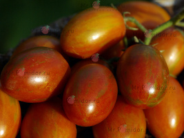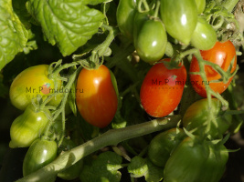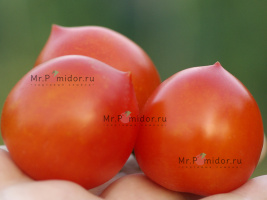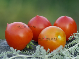 Низкорослый, ранний. Плоды в форме изящной сливки с носиком, красные с золотистыми полосками, массой 7-15 г, плотные и сладкие. Лист морщинистый, регулярный. Высота 25-30 см. Куст падает под тяжестью плодов, желательна подвязка к опоре.