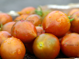 Низкорослый, ранний. Плоды в форме изящной сливки с носиком, красные с золотистыми полосками, массой 7-15 г, плотные и сладкие. Лист морщинистый, регулярный. Высота  25-30 см. Куст падает под тяжестью плодов, желательна подвязка к опоре.