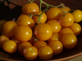 Детерминантный, раннеспелый, ампельный сорт. Растение среднеоблиственное, с регулярным листом, высотой до 20 см, длина стеблей до 80 см. Сорт не требует подвязывания и пасынкования. Для контейнерного выращивания, балконов. Очень урожайный! Обилие ярко-желтых округлых плодов массой до 50 г. Вкус помидора сладкий, сочный. Плоды хороши для свежего потребления и цельноплодного консервирования.