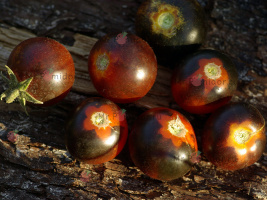Очаровательный сорт микротомата. Штамб, с простым морщинистым листом высотой 30-40 см. Ранний, неприхотливый, компактный. Пригоден для выращивания в контейнерах и кашпо. Плоды темно-красные, массой 10-15 г, с выраженным анто. Вкус яркий, взрывной, пряный.