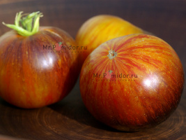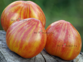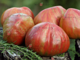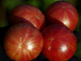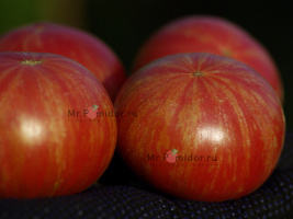 Полосатые помидоры необычайно привлекательны и декоративны. Внешний вид полосатых томатов никого не оставляет равнодушным. Полосатость томатов обусловлена наличием определённых генов, которые появились как результат спонтанной мутации. В настоящее время специалисты выделяют два типа полосатости: ген gs (green stripe) и ген fs (fruit stripe). Помидоры с геном green stripe имеют разного вида, ширины и формы радиальные тёмно-зелёные (у несозревших томатов) полосы. У спелых плодов окраска полос может быть жёлтой, оранжевой, золотистой, зелёной и т.п. Каждый сорт полосатых томатов имеет свой уникальный рисунок, цвет и вид полос. У томатов с геном fruit stripe радиальные полоски располагаются более аккуратно— напротив семенных камер. Такие сорта называются «тиграми». В настоящее время существует богатый выбор полосатых томатов и каждый огородник сможет выбрать томат на свой вкус и насладиться экзотикой с пользой для здоровья. В эту группу мы поместили все полосатые высокорослые томаты, имеющиеся в каталоге, в том числе и сорта томатов с полосатостью и антоциановым пигментом.