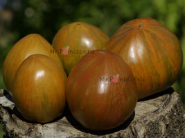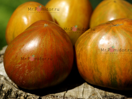 Полосатые помидоры необычайно привлекательны и декоративны. Внешний вид полосатых томатов никого не оставляет равнодушным. Полосатость томатов обусловлена наличием определённых генов, которые появились как результат спонтанной мутации. В настоящее время специалисты выделяют два типа полосатости: ген gs (green stripe) и ген fs (fruit stripe). Помидоры с геном green stripe имеют разного вида, ширины и формы радиальные тёмно-зелёные (у несозревших томатов) полосы. У спелых плодов окраска полос может быть жёлтой, оранжевой, золотистой, зелёной и т.п. Каждый сорт полосатых томатов имеет свой уникальный рисунок, цвет и вид полос. У томатов с геном fruit stripe радиальные полоски располагаются более аккуратно— напротив семенных камер. Такие сорта называются «тиграми». В настоящее время существует богатый выбор полосатых томатов и каждый огородник сможет выбрать томат на свой вкус и насладиться экзотикой с пользой для здоровья. В эту группу мы поместили все полосатые высокорослые томаты, имеющиеся в каталоге, в том числе и сорта томатов с полосатостью и антоциановым пигментом.