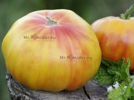 Есть в наличии Индет, среднеспелый. Куст крепкий, лист регулярный. Тяжелые кисти с одномерными плодами нуждаются в подвязке. Плоды плоскоокруглые, с ребристостью у плодоножки и пышными плечиками, желтого цвета с медовым оттенком, массой 300-600 граммов. Мясистые, с насыщенным вкусом, сладкие.